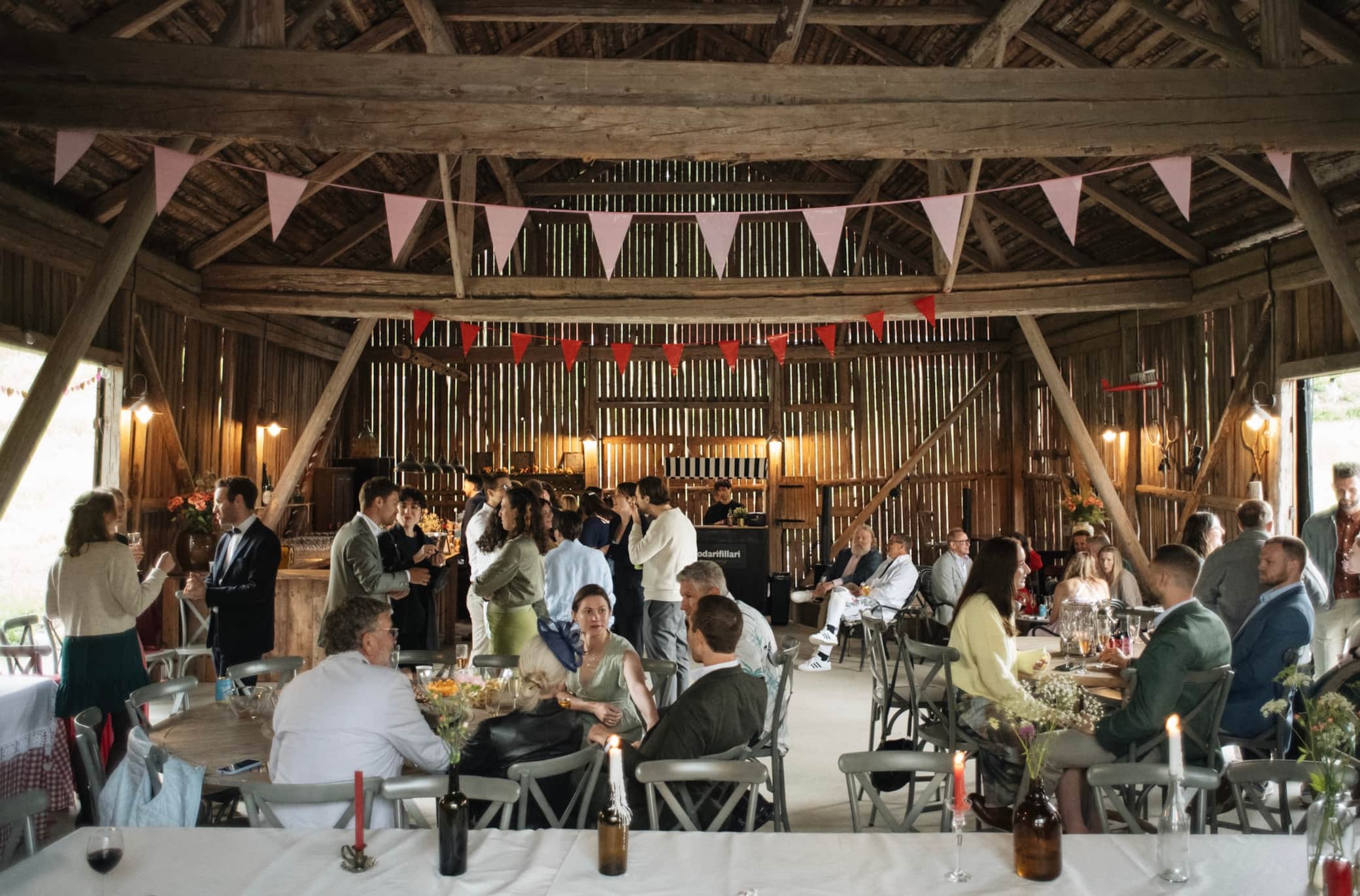 Vihkimisen jälkeen hääjuhlat voivat jatkua huvilan terassi-alueella tai ladossa – molemmat tarjoavat erinomaiset puitteet illalliselle, tansseille, puheille ja esityksille.